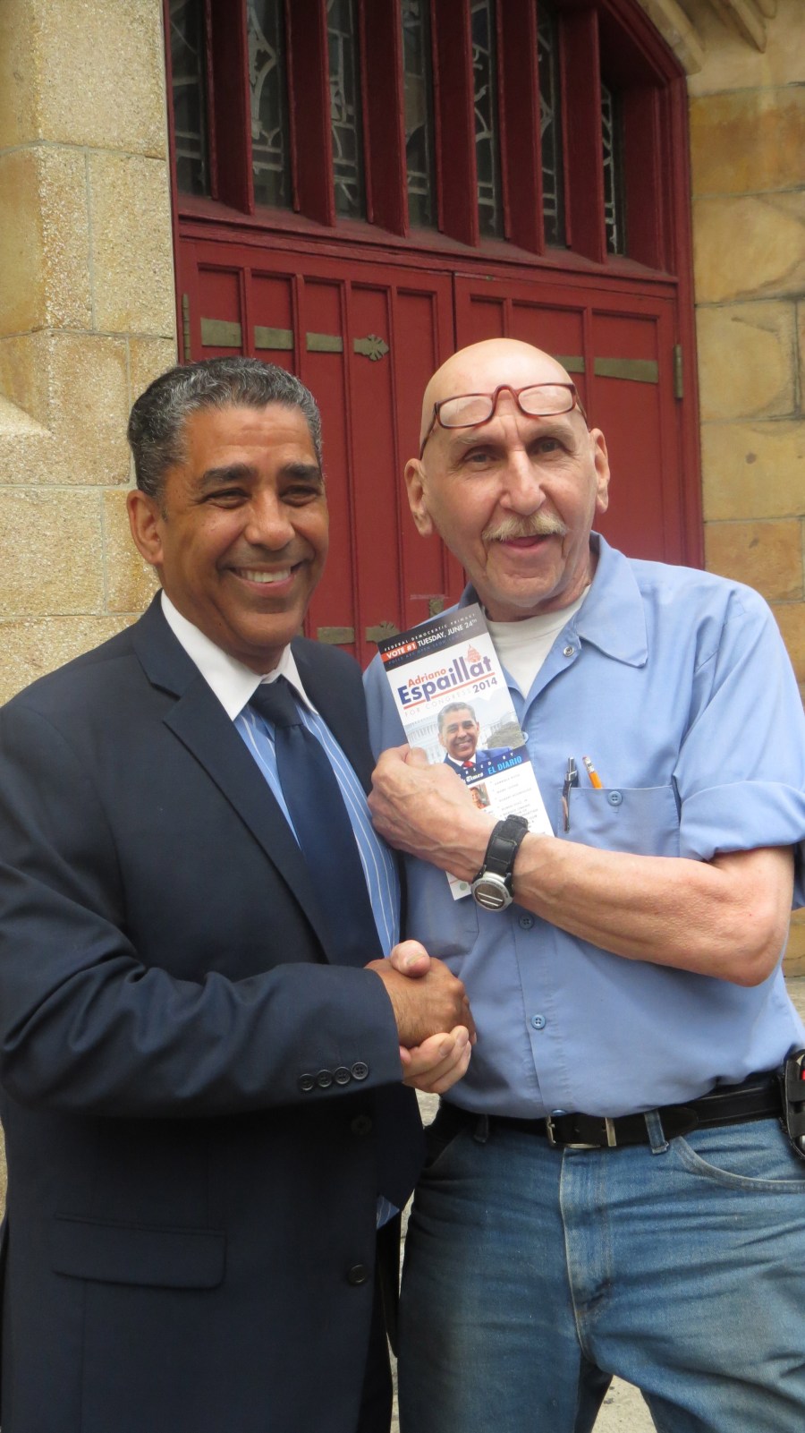 Espaillat with supporter in Harlem
